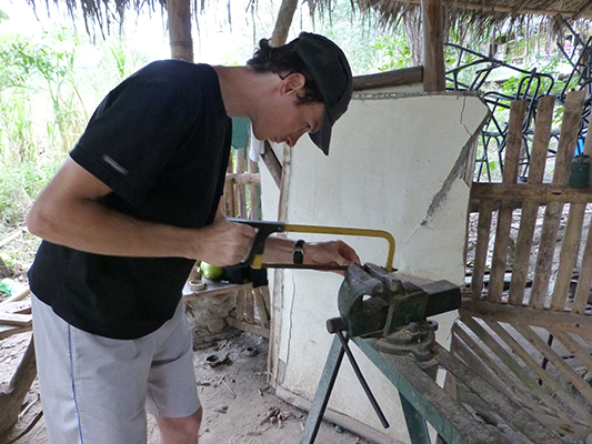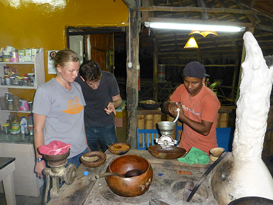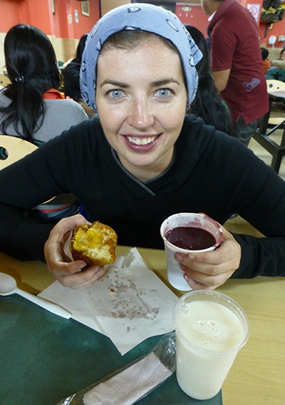 Our go-to lunch food–bread, banana, and peanut butter–to save money and good for long bus rides. In Canoa the peanut butter was $1 per handful–a very accurate unit of measure. I love that the bread says “Molde”.