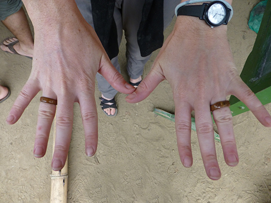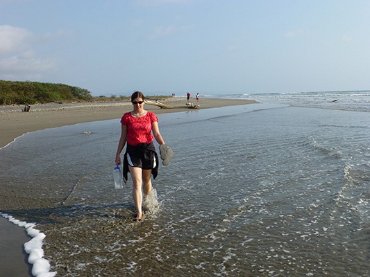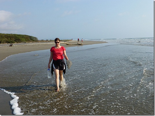 Sarah enjoying a walk along the beach. The beach here is very large, especially during low tide. Also worth mentioning is that it’s pretty clean. This is noteworthy because litter is a big problem in many of the places we’ve visited in Central and South America. One of the local restaurants offers a free margarita if you collect a full bag of trash.