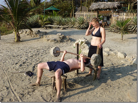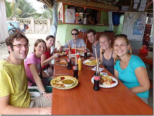 Tomas and Steffi (Germany), Sarah and Dave (you know us), Zach and Erin (Seattle, Washington), and Conny (Switzerland) grabbing lunch on the Canoa beach.