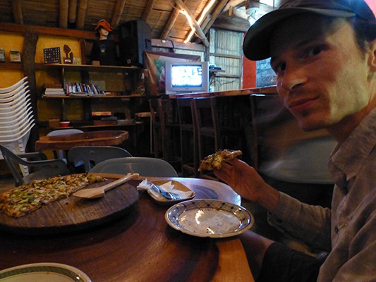 At the end of the second day and after the rest of the crew headed back to the farm, Sarah and I spent the evening relaxing and walking along the main strip parallel to the beach. For our last dinner in Canoa we hit up a restaurant called “Surf Shak”, which I’m guessing was started by a U.S. expat, as it seems to be geared towards folks from the U.S. They make great pizzas and have NFL football games playing all day Sunday, both of which we enjoyed. After traveling for a while and not having access to familiar things, e.g. food, friends, places, etc., you find that you start to miss them more than you imagined. And when you suddenly have access to them again it’s very comforting to indulge a bit. Pizza and football were two of those indulgences.