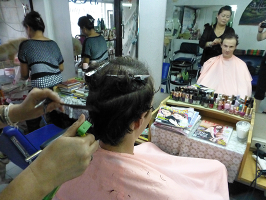 These women were packaging the gold leaf to be sold and used. Some others were applying it to figurines to be sold.