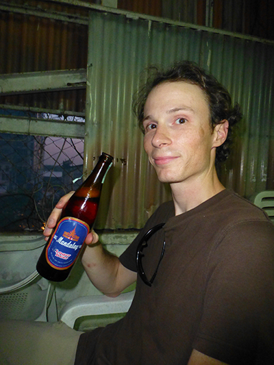 Our first night in Yangon cooling down with a crisp beer on this very muggy evening.