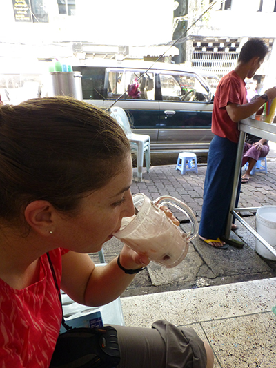 Sarah enjoying the strawberry lassi (yogurt drink). It was the chunkiest lassi I’d ever had. One of the tastiest too.