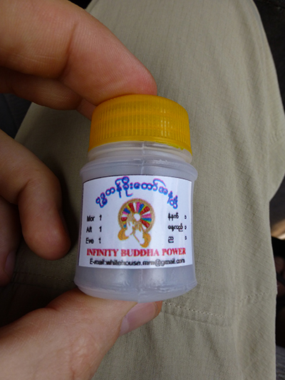 Infinity Buddha Power pills were given to us by the hotel owner. He promised great results for almost any ill. We opted not to used them.