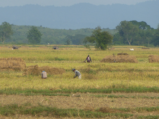 We saw acres and acres of farmland along most of our bus rides. Myanmar is an agrarian society. Much of the work was done by hand and with cattle and oxen. I only saw a few small tractors in use.