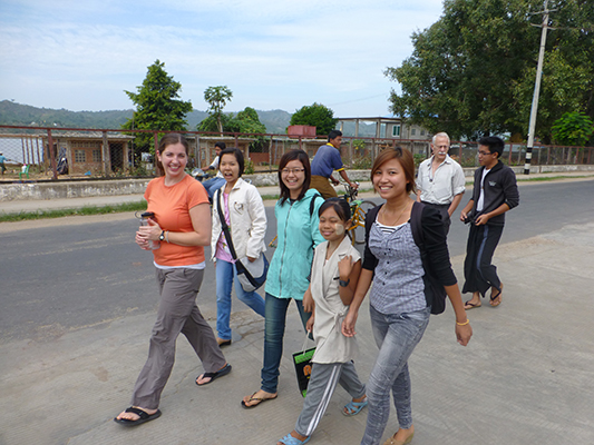 These girls were part of an English speaking class in Pyay. They told us that not many tourist visit Pyay, so they were siked to spend time with us. The girls in the group were especially excited to find out that Sarah was an Engineer. As soon as they did she had a following. The girl in the foreground wants to be a singer. The youngest girl, known as monkey, asked us what we thought about democracy.