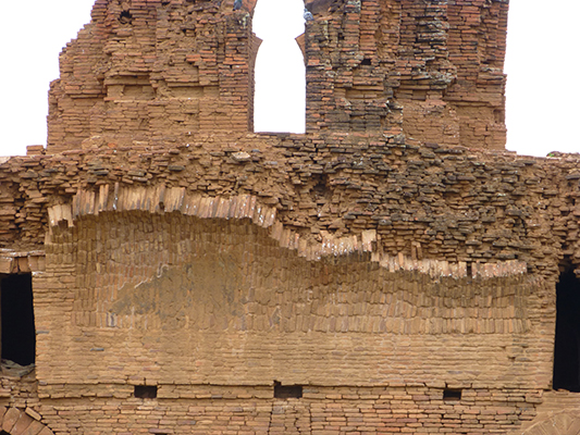 What looks like the inside of a crumbling temple.