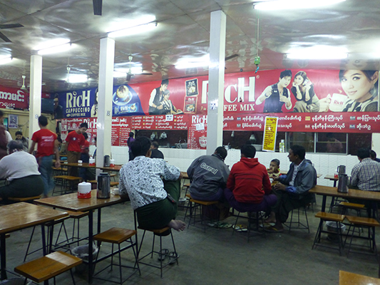 A tea house we frequented while in Mandalay. I really like the atmosphere in these places. This shot is pretty early in the morning so it’s not very busy. It’s full most of the day, into the evening. The popular drink there is black tea with sweetened condensed milk. It was tasty.