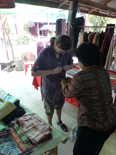 Trying on a one-size fits all dress. Not flattering on me at all.