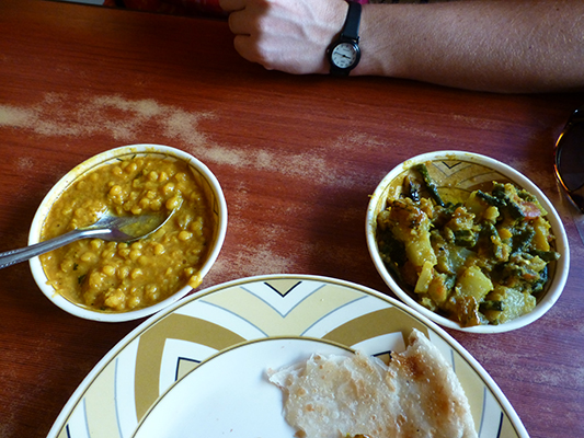 Breakfast a Radhuni. Lentils and vegetable curry with Chapati bread.