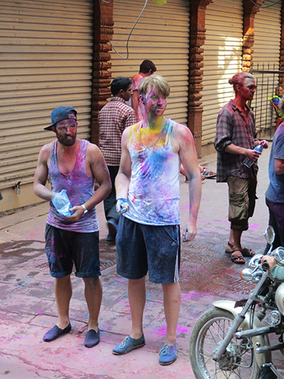 I’ll start with our favorite experience, celebrating the Hindu holiday called Holi. Holi is commonly known as the “festival of colors”. Why this holiday hasn’t become popular in the U.S. is a mystery to me. The obvious reason it hasn’t is because it’s a Hindu holiday and there isn’t a huge Hindu presence in the U.S. Regardless of that minor fact, it’s a fun holiday and people of all ages would surely enjoy it. To learn more about the origins of Holi I’d recommend checking it out online. What I do know is that a major part of the celebration involves attacking friends and complete strangers with colored powder and balloons filled with dyed water. Most of these attacks come as a surprise, and from our experience, foreigners are especially targeted—much to our delight of course.