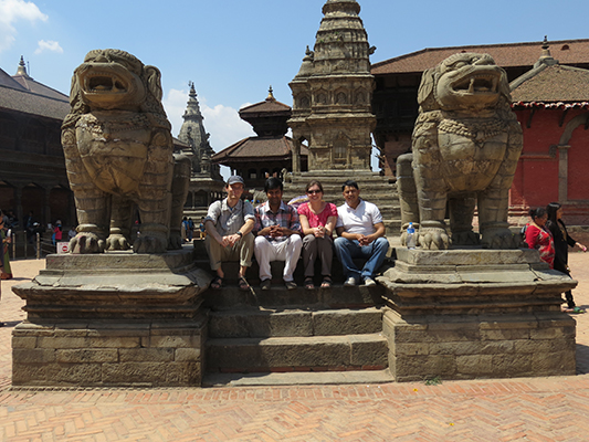 Kathmandu and the surrounding areas have a long and rich history, mixed with Hindu and Buddhist culture. There are many old buildings and temples that are proof of that rich history. We visited a few Durbar Squares in and around the city. The term “durbar” means palace. We also visited a few Buddhist Stupas near the city. Bhuwan and a friend of his spent most of a day taking us around to these different sights. Thanks again Bhuwan.