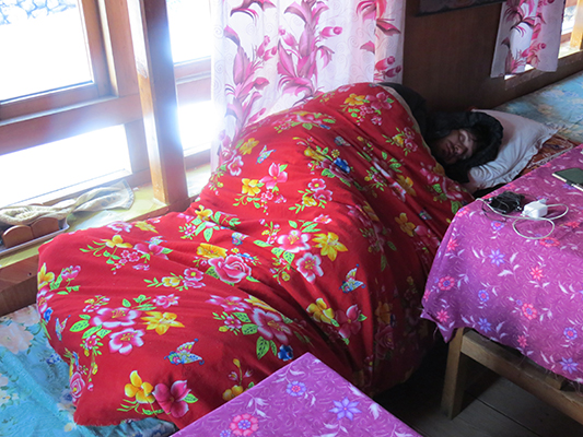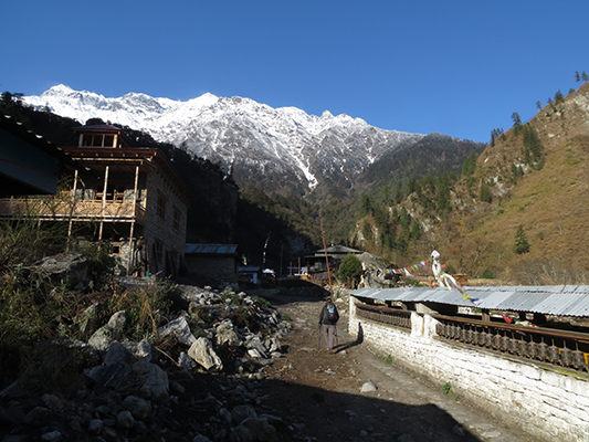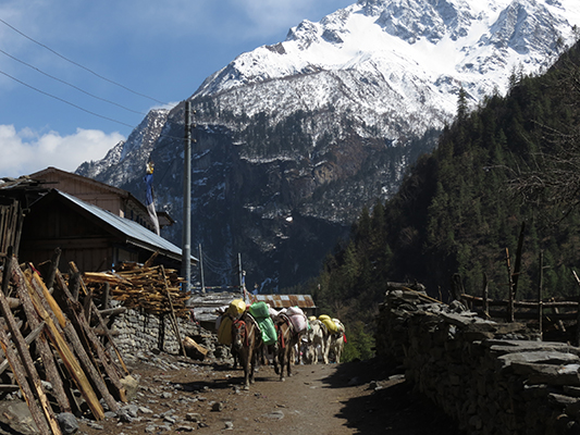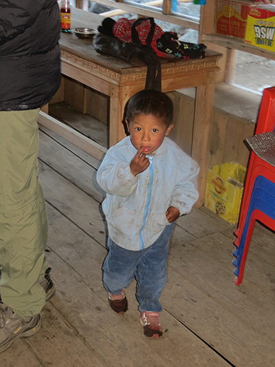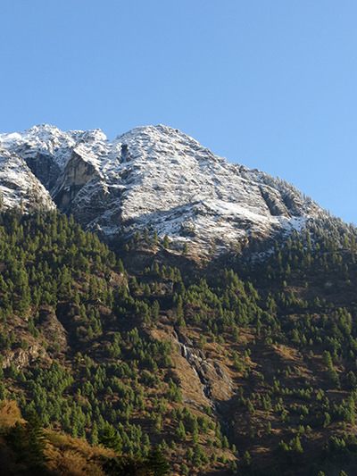 Day 2: Up early, of course because Dave is involved, and on the trail at 7:15 am. We stopped for lunch in the village called Karte and then continued to Bagachhap. We arrived in Bagarchhap at 2:30pm. We decided to call it quits here because it was raining again. Bagarchhap was not the prettiest village on the trek, but they had a bed and food and those were our only needs. If we were to do it again, we’d go to the next village of Danaque or Timang. There are more guesthouses in both. Timang has some pretty awesome views as well.