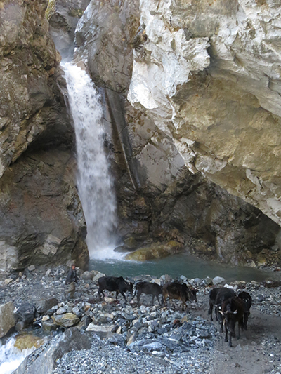 Day 1: Bus from Pokhara to Besi Sahar took about 4 hrs. Jeep from Besi Sahar to Syange took about 3 hours. We arrived still pretty early so we decided to walk a little up the path and stopped at Jagat. The walk took us only 45 minutes and we could have walked longer but it was raining so we decided to stop. We’re glad we skipped from Besi Sahar to Syange. All of the hikers we passed were constantly covering their faces from the dust the jeeps kicked up and the path isn’t that interesting that low in the mountain. We met our first group of trekkers this night. Some of them had already been on the trail for a day or two. But all the people we met this night we bumped into every so often for the rest of the trek.